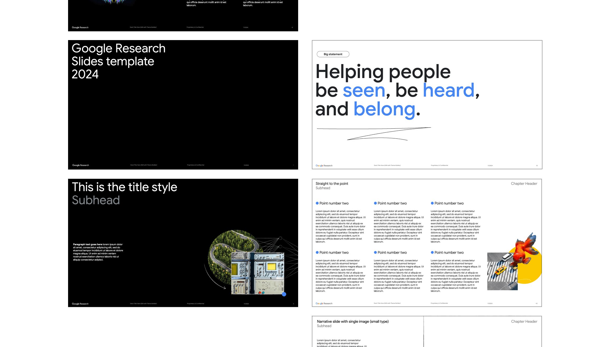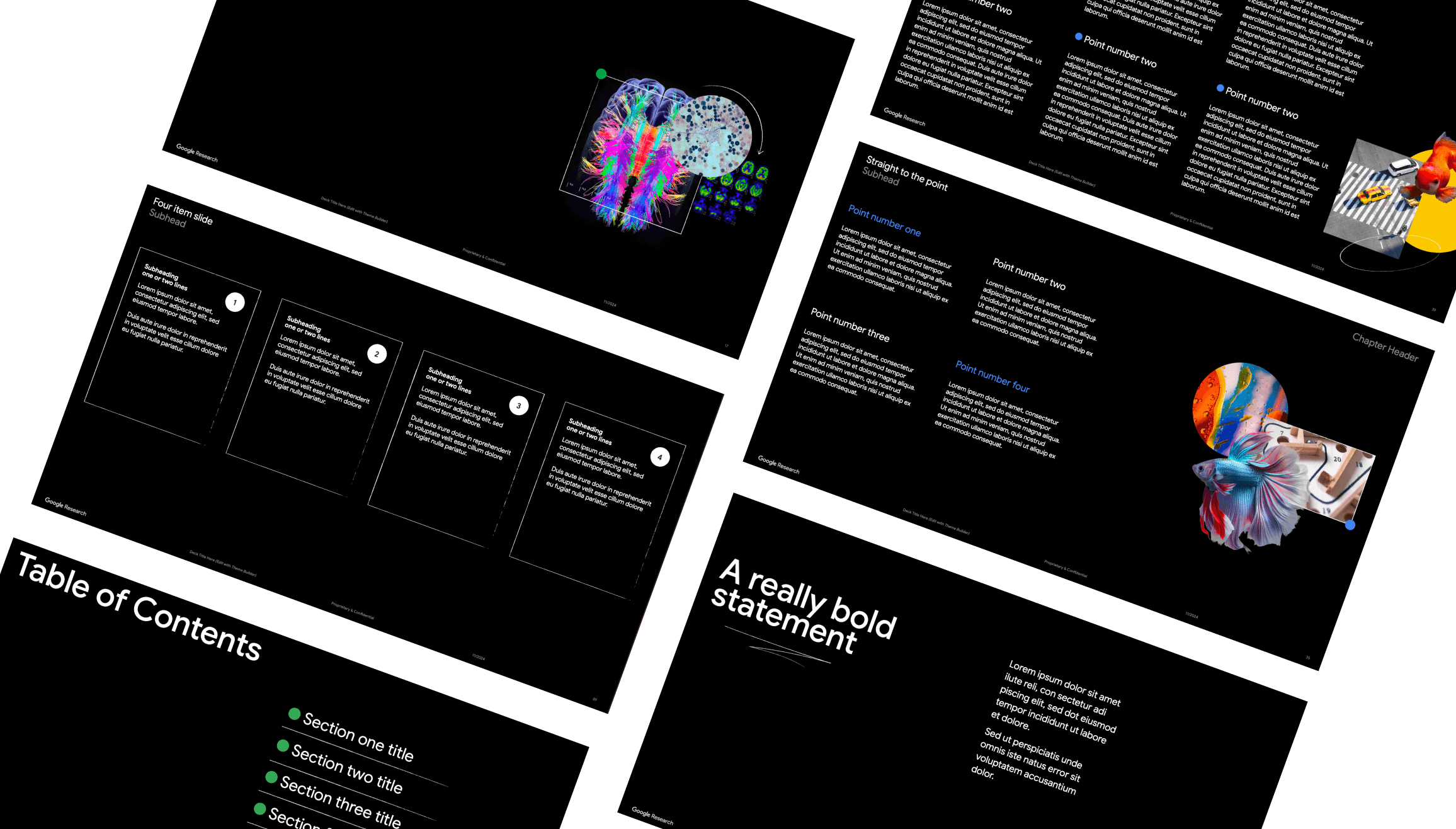 The deck consisted of 150+ slides with dark and light themes to support the Google Research identity.
